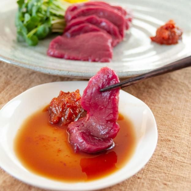赤身の馬刺しは、低脂肪・低カロリー・高タンパク質でとてもヘルシー!鉄分も豊富で、健康志向も兼ね備えた上品で贅沢な逸品です。